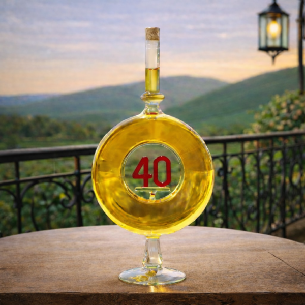 A 40-es számmal ellátott díszüveges borok kifejezetten azok számára készült, akik egy közelgő 40 éves házassági évforduló ünneplésére készülnek és igazán emlékezetes ajándékot keresnek. Ez a palack tökéletes választás, hiszen a palack külsején egy 40-es szám található. Nem csak a boros palack formája különleges, hanem a benne található bor is. A bor a világhíres Magyar Tokaji borvidékről származik, melyet tradicionális, és védett borászat technológiai eljárással készítünk. A betöltött bor a világon csak ezen a borvidéken készíthető. Az egyedülállóan kiváló minőség, jól szemlélhető a nemes ital színén, illatán, és egyedülállóan speciálisan tokaji íz és aroma világában.