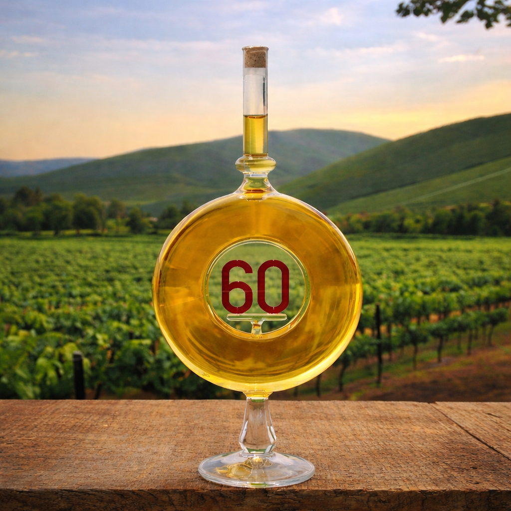 A 60-as számmal ellátott díszüveges borunk kifejezetten azok számára készült, akik egy közelgő 60. születésnap alkalmából egy igazán emlékezetes ajándékot keresnek. Ez a palack tökéletes választás, hiszen a palack külsején egy 60-as szám található. Nem csak a boros palack formája különleges, hanem a benne található bor is. A bor a világhíres Magyar Tokaji borvidékről származik, melyet tradicionális, és védett borászat technológiai eljárással készítünk. A betöltött bor a világon csak ezen a borvidéken készíthető. Az egyedülállóan kiváló minőség, jól szemlélhető a nemes ital színén, illatán, és egyedülállóan speciálisan tokaji íz és aroma világában.